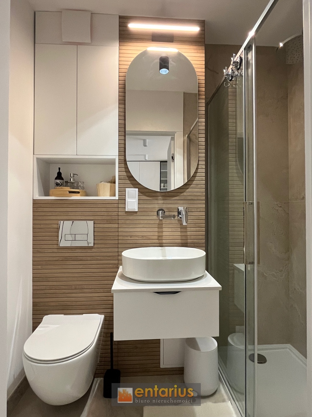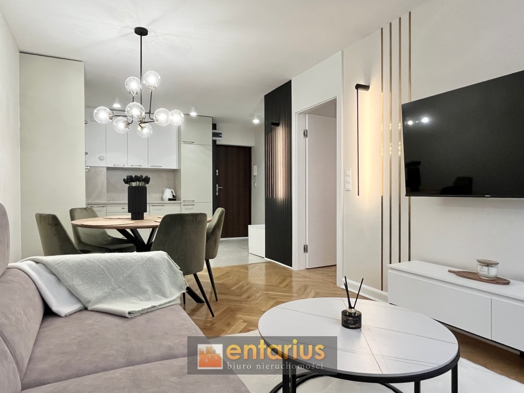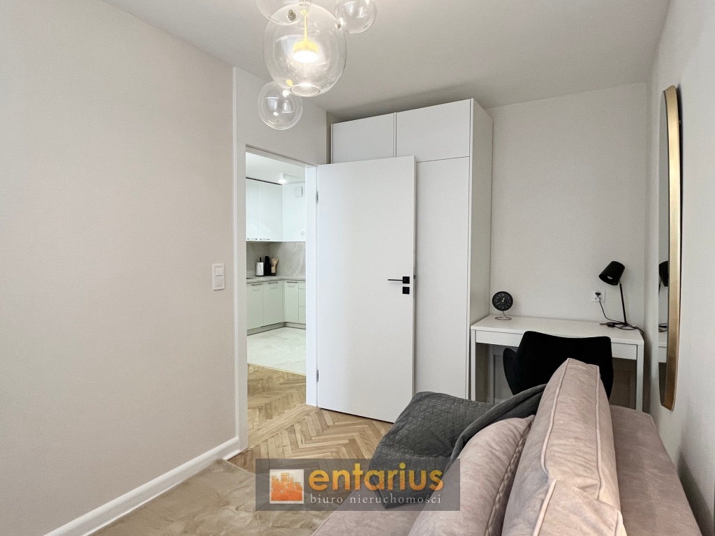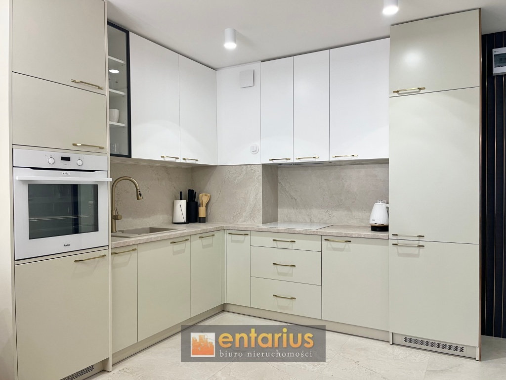 Mieszkanie jest w pełni umeblowane i wyposażone – do dyspozycji najemcy m.in. telewizor, pralka, zmywarka, piekarnik, płyta grzewcza, lodówka.